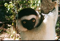 Am 15.4.2000 sind wir von Toliara weggefahren. Es liegen 600 km Piste vor uns. Am Anfang geht es ziemlich harzig, dafuer ist die Landschaft wunderschön. Die Strasse ist nicht einmal auf meiner Karte eingetragen – eine totale Nebenstrecke. Wir übernachten in einem kleinen Wald direkt an den sumpfigen Ufern des Onilahy. Die Nacht ist, wie man sich eine Nacht im Urwald vorstellt: drückend heiss, der Schlafsack klebt, der Schweiss rinnt auch im liegen. Geräusche von allen Seiten, Vögel, Insekten. Langsam wirds schon wieder hell, neue Geräusche, mal schauen – etwas mit langem Schwanz. Eine ganze Gruppe Kattas vergnügt sich in den Bäumen ringsum. Sie springen hin und her, wetzen hoch und runter, knabbern, rufen, putzen sich. Nach einer halben Stunde ist der Zauber vorbei. Zum Frühstück finden sich einige Zuschauer aus dem nahen Dorf ein, wir sind einmal mehr eine Attraktion.